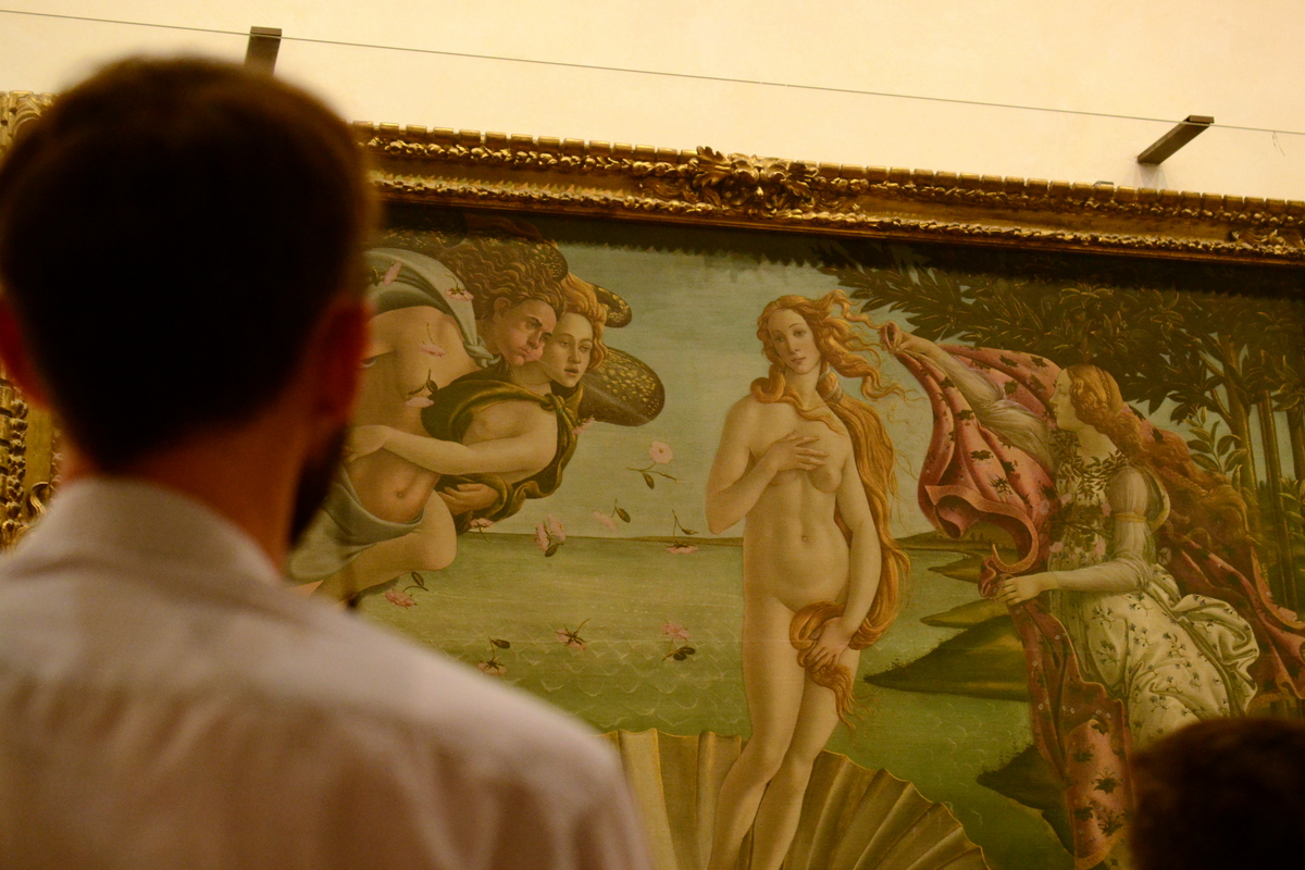 Cam has loved Boticelli’s “Birth of Venus” (1486) for years, and seeing her at Florence’s Uffizi Gallery was set to be a highlight. We pre-booked an entry time, bought the girls a kids’ guide book so they’d know which were the “must see” paintings (and to give us a bit of Medici family history beforehand), and after a quick flirt with the security guard after I buzzed at the metal detector “You are a very terrible woman…with very beautiful eyes…are these girls your sisters?”, we were in.