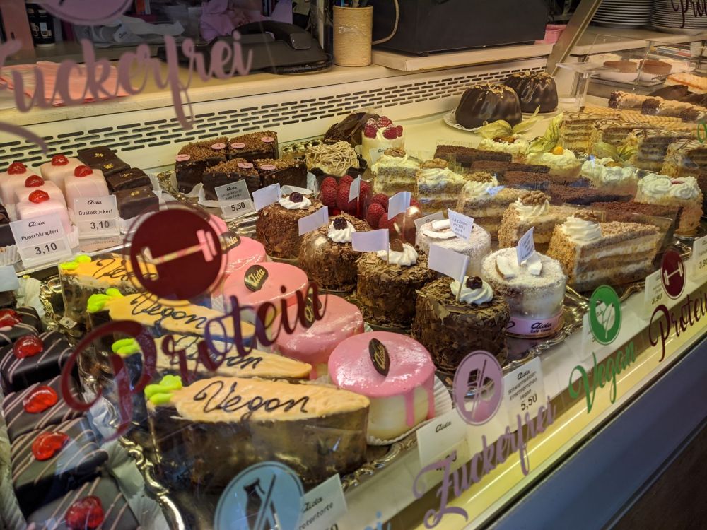 Vienna claims to be the “coffee house capital of the world”, with cute cafes dotted around the city. Australians LOVE a coffee, but for some reason are always toting them arund town, on transport, to and from work, in hideous takeaway cups or Keep Cups. On all of the trains and trams we caught in Vienna, we only saw two people drinking coffee. The rest actually sit, or stand at the door with a cigarette, enjoying their brew, most likely a Viennese Melange (think fancy cappuccino). The cake selections are impressive, but the A1 cake in Vienna is the Sacher Torte…rich heavy chocolate with a jammy filling and glossy chocolate icing. See that massive queue in the last pic here outside Cafe Sacher? They have clearly all read their guide books/travel pages and know that the Sacher Torte was allegedly first sold here in the 1870’s after being invented by Franz Sacher in 1832. The recipe and name of the cake had two establishments (Cafe Sacher and Cafe Demel) duke it out in court rooms for years. We instead found Cafe Aida, found in 1925, and where a perfect slice cost us just 4 euros.