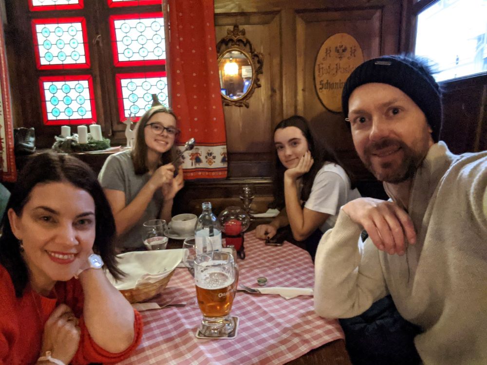 We ate Christmas lunch at Purstner, a glorious traditional Austrian restaurant. The menu was meat-heavy comfort food (salad for vego Milana) Shnitty for Cam, and pork and potatoes or sptzle (gnocchi type dumplings) for Avalon and myself.