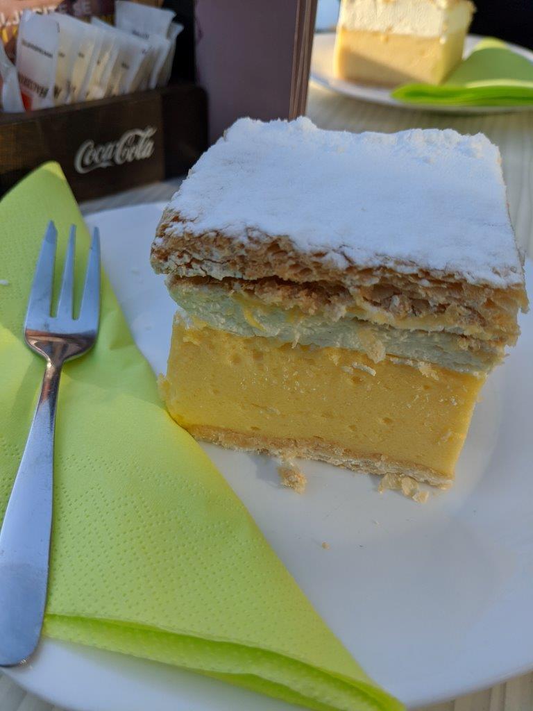 My review? Well it’s basically just a vanilla slice. Not your wobbly gelatinous “snot block” you’d find at any country bakery in Australia. It’s fancier and more subtle than than, with maybe even a hint of cinnamon? But the lashings of cream, and that subtle taste didn’t hit me like a really great vanilla slice does. Dani’s slice rating? A mere 7/10. Sorry Slovenia!
