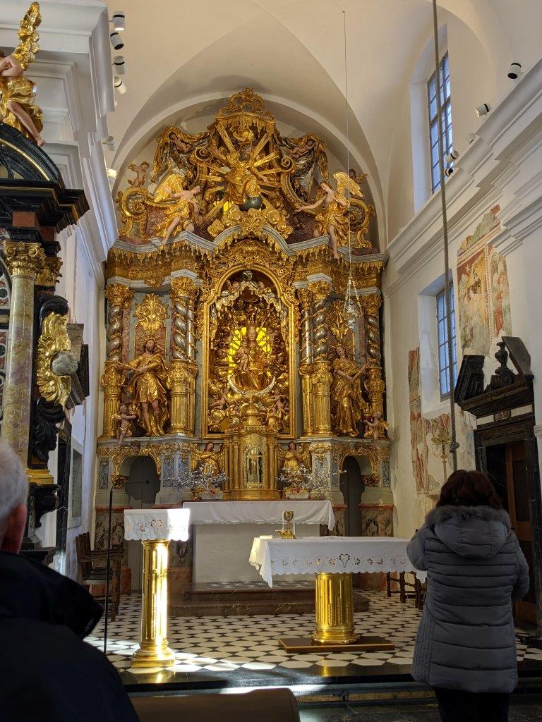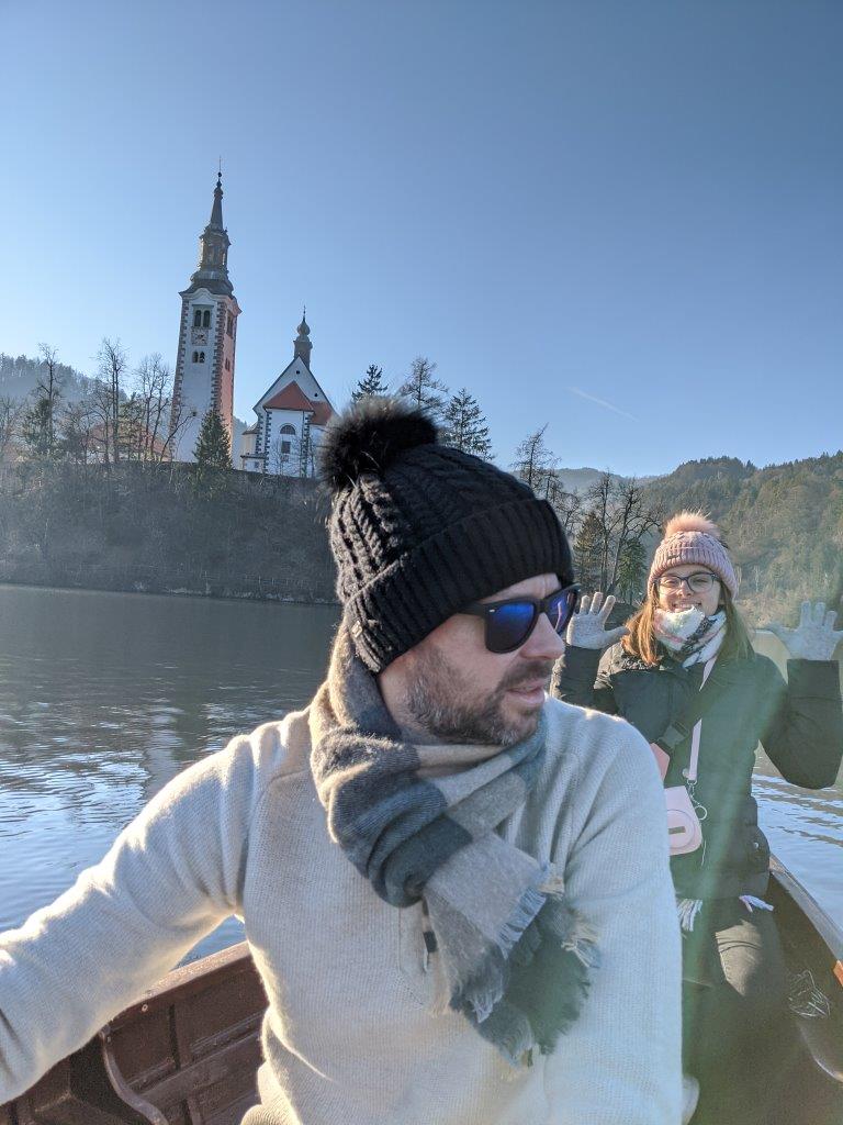 Even though we had a max of ONE DEGREE today, it was warm out on the lake, and oarsman Cam captained our vessel to and from Bled Island and its (take a deep breath) “Church of the Mother of God on the Lake”.