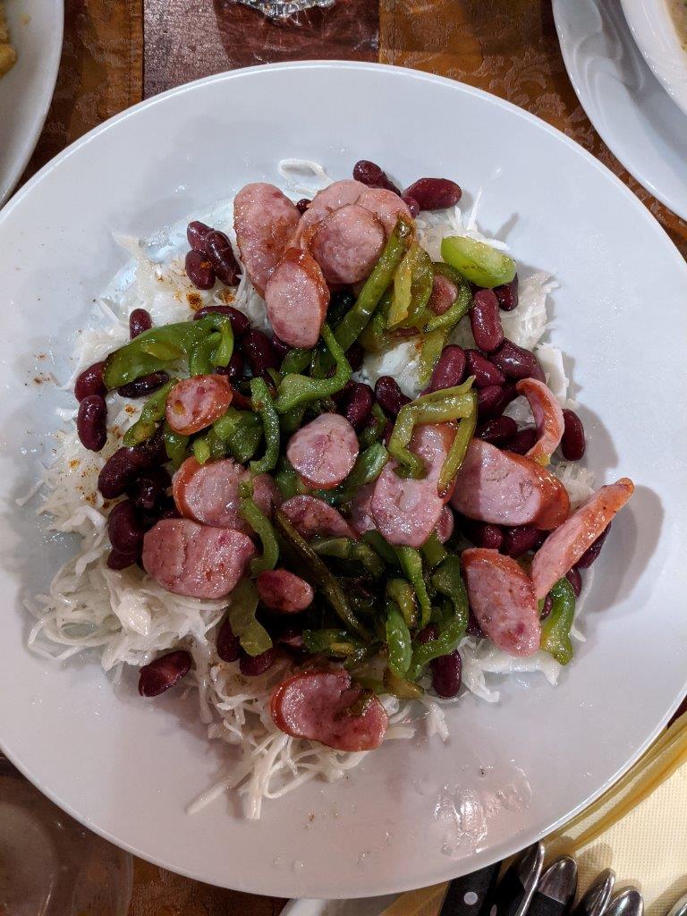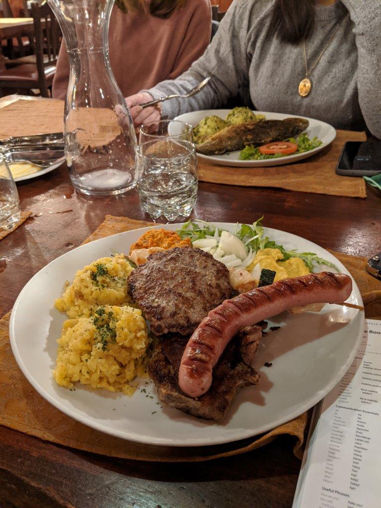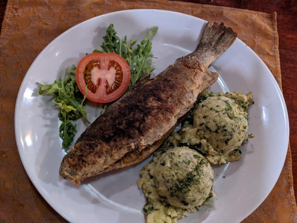 We ordered a bunch of traditional Slovenian dishes. Everything was delicious and so cheap with our whole meal costing around AUS$60. There were cottage cheese strukli with mushroom sauce, mushroom soup, Kranjska sausage, Soca river trout and a weird salad (they called it “Naklo salad”) which consisted of finely grated cabbage, red beans, marinated capsicum and sliced klobasa sausage. SO good!