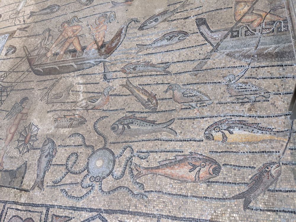 There’s been a church on the site since 181 BC, and the drawcard is the gorgeous mosaic floor from the 4th century, wavy with the movement of the earth, but still vibrant and expressive, after being covered over for years (they were only uncovered in 1909) after a variety of well-meaning renovations. They’re said to be some of the best preserved mosaics in the world. Glass walkways have been installed so you can get a good look at them without them being destoyed.