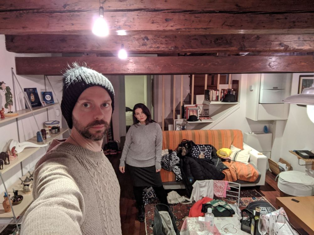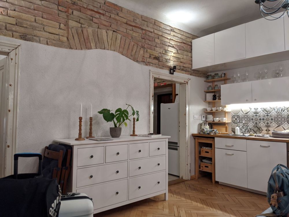 Cons: 4 flights of stairs; no plug for the sink, one teaspoon, 3 forks (Milana ate pasta with chopsticks), no toaster, not enough towels; bathroom smells like sewage