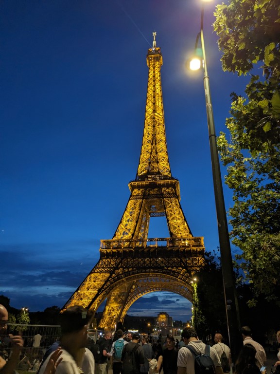We struggled through many barricaded areas and fenced-off walkways as the city readied itself for the next day’s Fete de la Musique, and took the obligatory snaps. She’s a true beauty, especially lit up at the LATE 11:15pm dusk. No need to say anything else really. Other than “NO kind sir. I DO NOT want to buy a plastic light-up Eiffel Tower replica.”