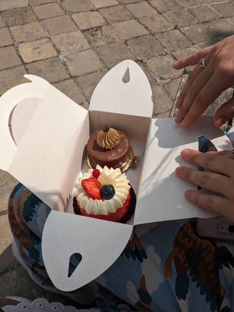 With a child named “Avalon”, of course visiting “Avallon” was a must. Unfortunately, the town was a bit tired and sad. We followed the tourist bureau’s “Frog circuit” encouraging visitors to take in the town’s key sights…but the damp church overgrown with moss, and a central park with wiccan-like dream catchers made by local school kids that were bedazzled with old cutlery, did not thrill us. We took in lunch at a local bistro, where the table was on such an angle, my plate kept sliding into Cam. The meal was terrible all-round. Cakes in a local patisserie looked incredible but were filled with whipped cream and tinned fruit (ewwww). So basically, thumbs down for Avallon.