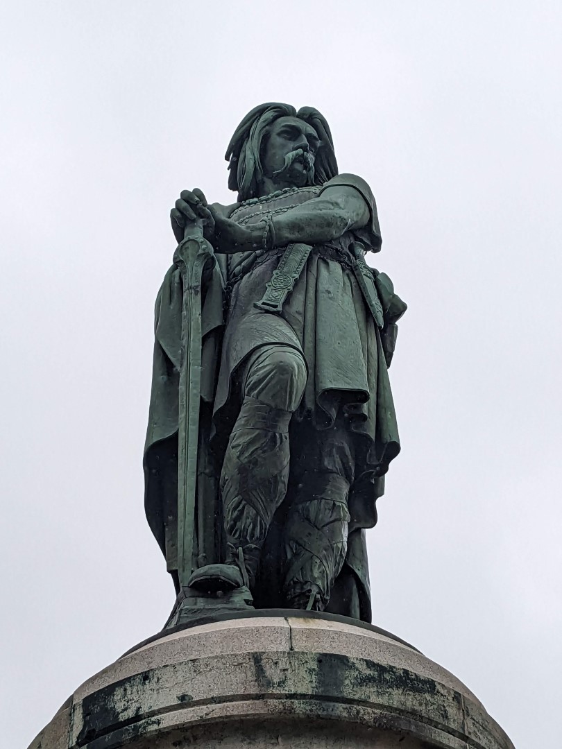 Napoleon ordered a 7-metre high statue (using his own face as a model) to be erected of Vercingetorix in 1865 at the site of the Alesia campaign to celebrate his courage and strategic decision-making. He is an imposing, powerful figure. The inscription reads: