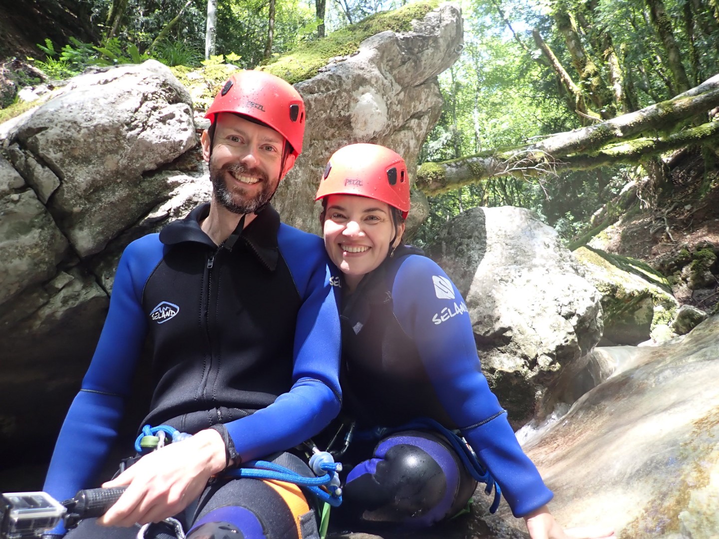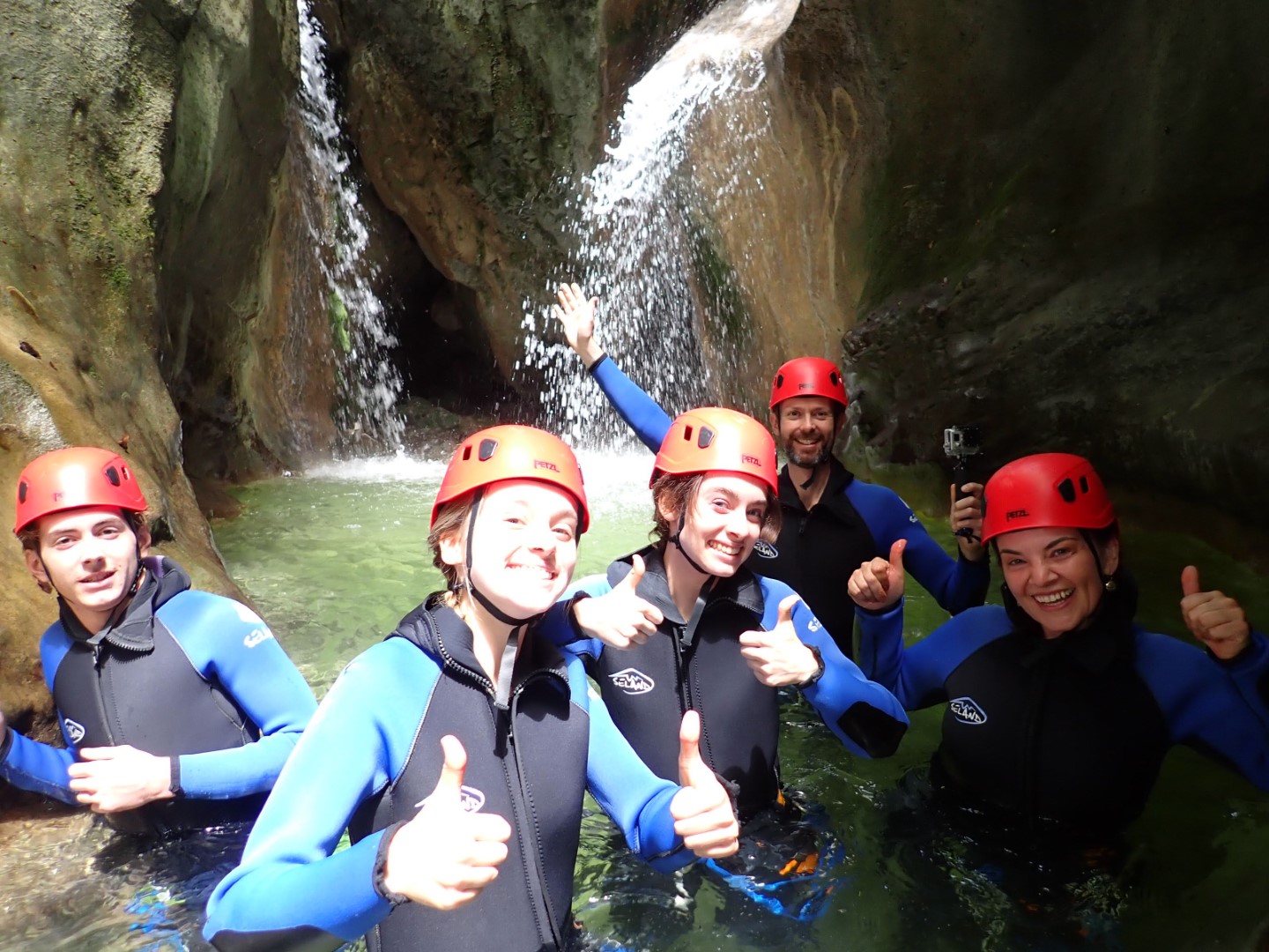 When Paul from Terreo Canyoning asked if we were ready and excited to get going as we wet suited up at the bottom of Angon canyon, I straight up replied “no.” While I like to consider myself semi-adventurous, thoughts of dropping (trauma remaining after bungy jumping in New Zealand which I hated), or cracking my or my family’s heads open (just a basic parental concern) were concerning me somewhat. Paul looked me square in the eye and told me we’d be okay. With typical St.Clair luck, the other four that were set to join us pulled out last minute (hooray!), so it was just us, as well as the instructor’s 17 year old nephew Charles, who seemed just as in awe of his uncle’s agile (and frightening) navigation of the canyon as we were.