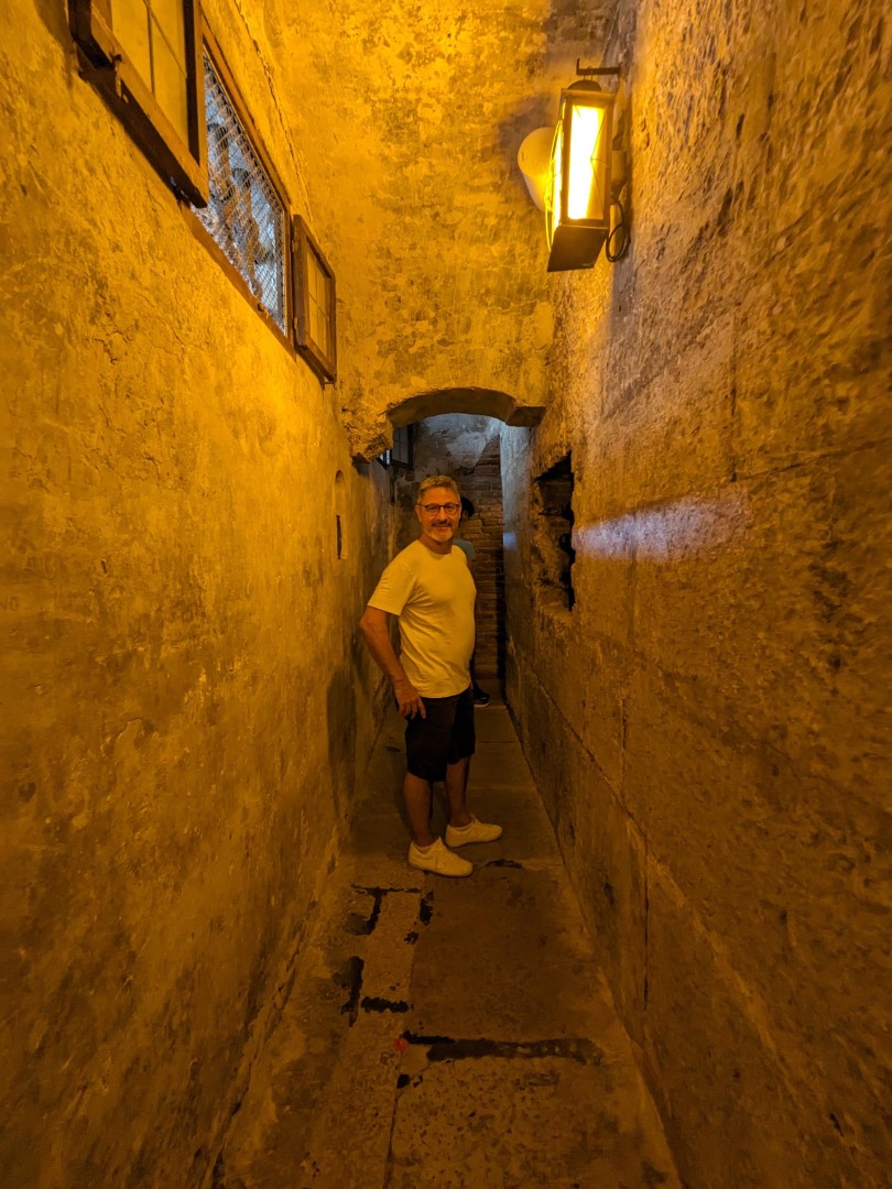 Aurora took us behind the scenes of the palace, through the maritime-inspired timber offices, the Inquisitor’s room, the prisons and torture chambers. Venice’s celebrated writer/lover/criminal/cad Casanova was the only one to ever escape the palace’s cells, and his story was woven throughout her tour.