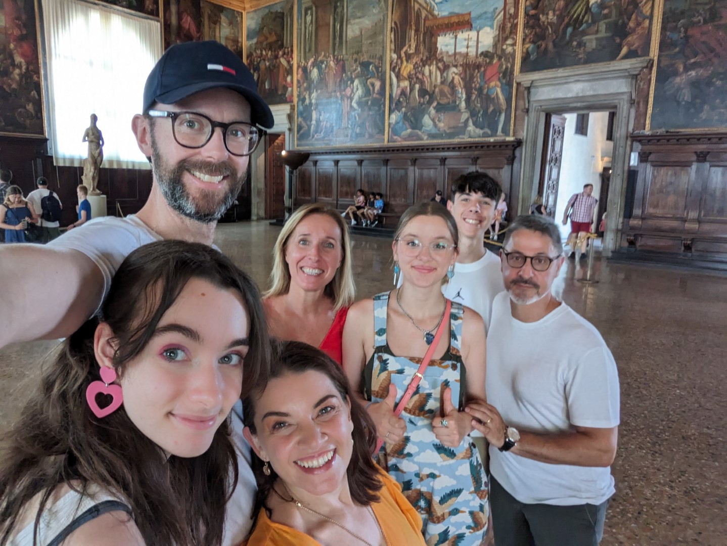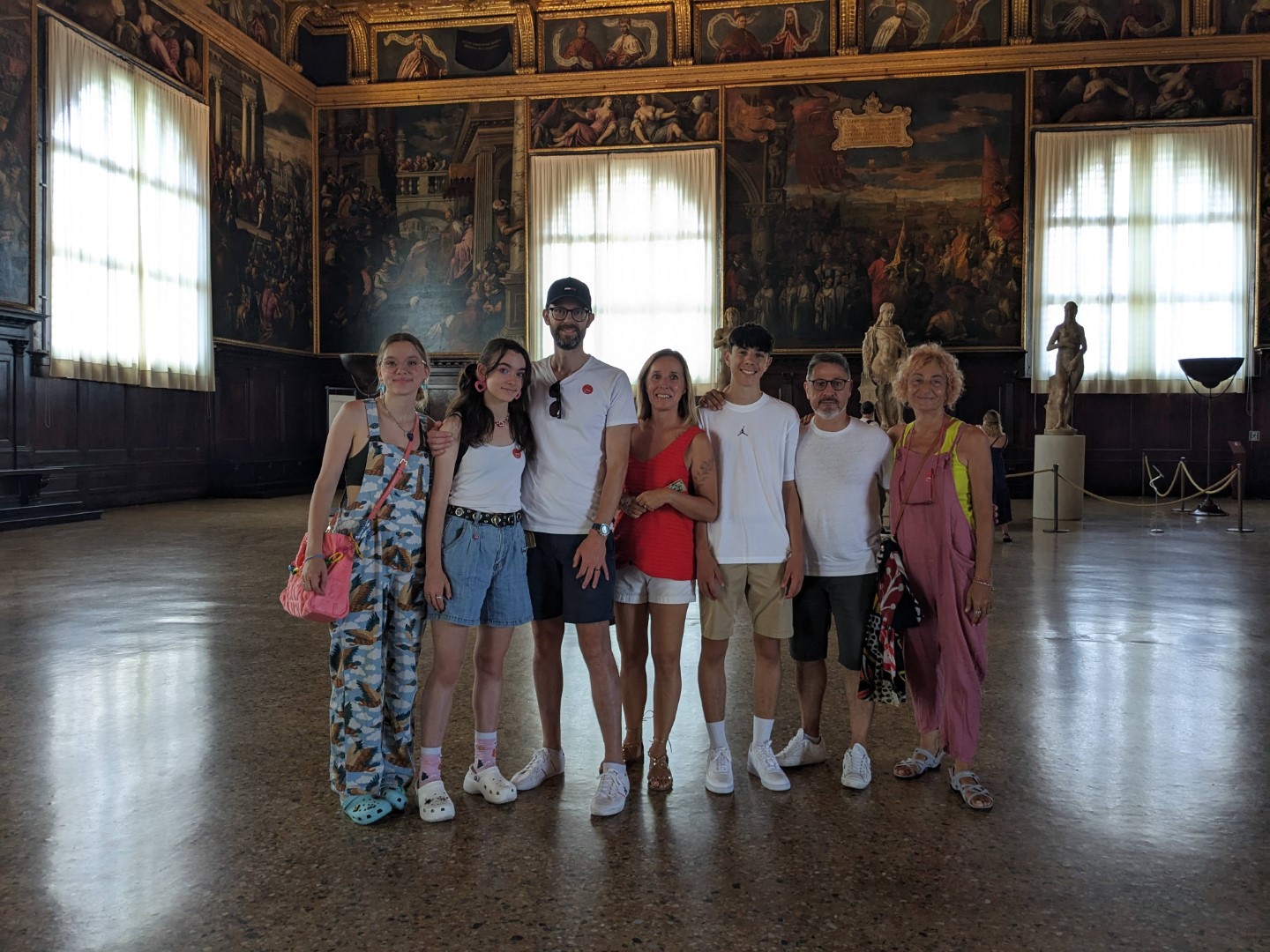 This is about the extent of my Googled knowledge. We took a brilliant (but sweaty…how did they cope in Venice pre-aircon?) “Secret Itineraries” tour with a superb guide Aurora. She also happens to be my cousin, and her parents Giovanni and Mara (seeing her in action for the first time), her brother Niccolo, and my other Italian cousins Laura and Michele joined us.