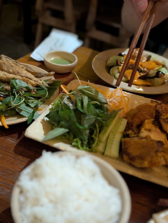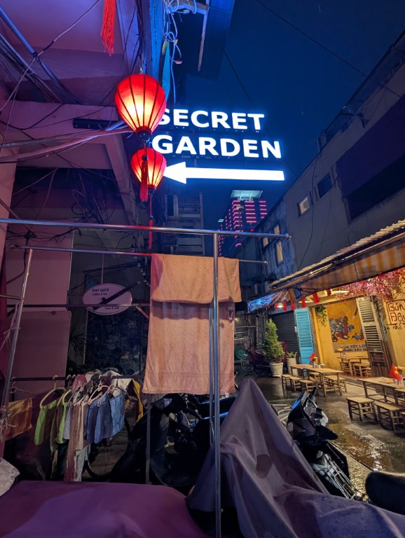 We ate a sweet seafood hotpot, fried fish and razor clams at Bep Oc next to our hotel, and a feast on our first night at hidden restaurant Secret Garden, another “you know if you know” treasure up five flights of un-signposted steps.
