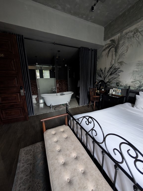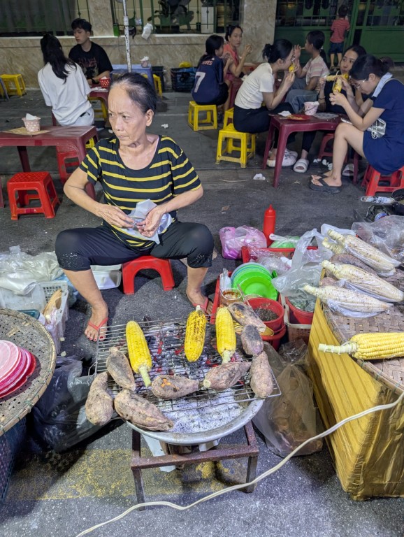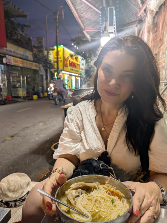 Our elegant boutique hotel The Chum (decorated in the same French meets Asian colonial style as our hotel in Ho Chi Minh) was walking (or drunken rented bicycle-riding) distance from the centre of Hue’s action, “Walking Street”. It was also just around the corner from a local street food market where we feasted on 80 cent grilled mystery meats on sticks, and $1 banh mis, surrounded by loads of teenagers squatting down on the little red plastic schools that vendors bring.