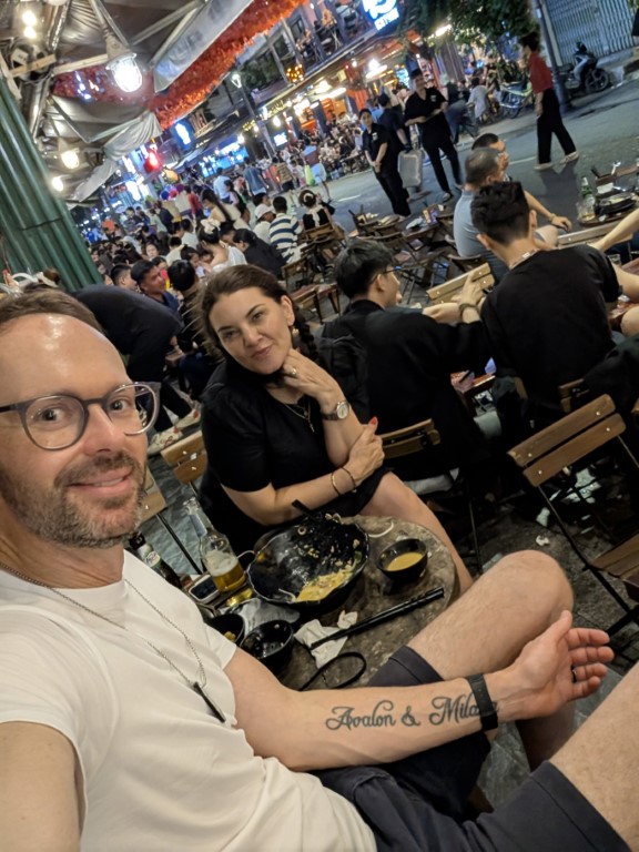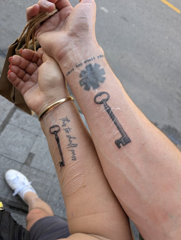 The proliferation of youth in Hue also meant there were trendy coffee shops everywhere full of people sitting around in groups chatting. There were also loads of second-hand clothing shops, like Hurricane, filled with American and Japanese cool-kid clothes. There were tattoo shops, and we got matching key tattoos from 1984 Studio, where Kandle, Ryu and Tom were super cool, professional and sweet. The keys were sketched out by Kandle from a photo sent by our cousin Aurora in Italy: keys from the Doge’s Palace in Venice where she’s a tour guide, that open mysterious locks around the building.