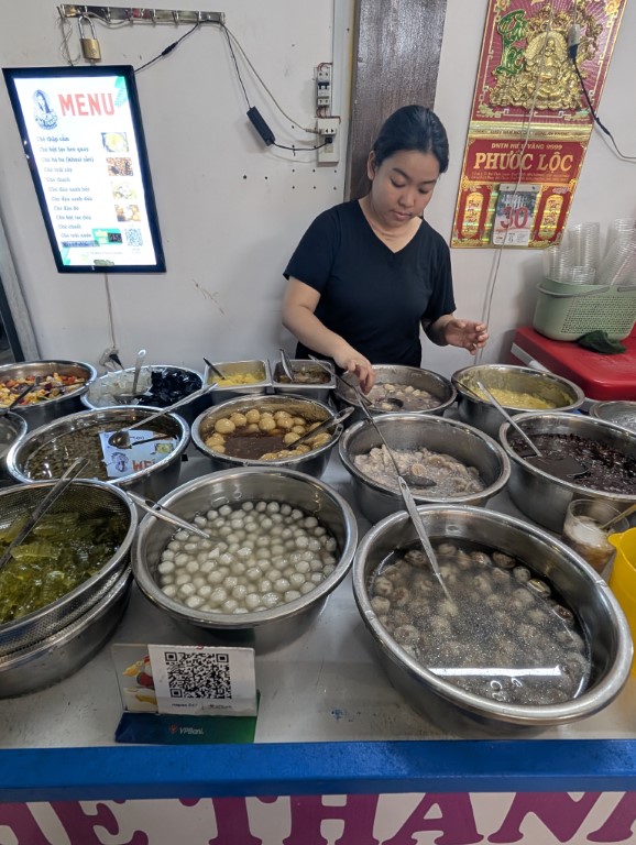 We ate so much food in Hue, and tried some local specialties including Bun bo Hue (beef noodles) from a street cart; salted coffee; Che Hue (sweet soup with tapioca, bean or fruit condiments); and keo me xung Hue (sesame candy).