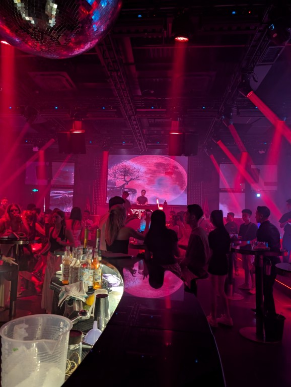 We noticed big black balloons being brought to peoples’ tables too, and had no idea why they were holding on to them and slowly inhaling the gas…until we went to another club to continue our night.
