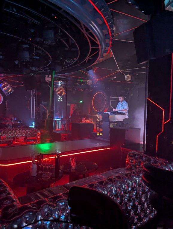 Alita was decked out in silver lounges with a retro-futuristic interior. Neon lights, mirrors, LED screens: what the 80’s imagined the future to look like. Even the toilets were mirrored on every surface. Every wall. Even the ceiling. We ordered a balloon, and Alita’s manager joined us at our table along with two bar tenders to check we’d be ok. I’m still not sure what was in the balloons. The manager called them “smile balloons” and explained that I needed to breath the gas in slowly to get a brief but intense happy feeling. The whole experience was very strange, and yes, there were happy, light-headed rushes.