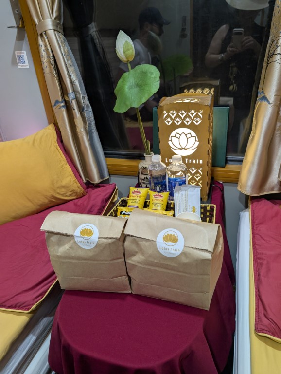 On board the train we had our own cabin piled with sugary snacks. The Lotus Train was a great time: Comfy. Perfect temperature. Apart from a random guy offering us foot massages who tried to steal our cabin documents, it was a real adventure!
