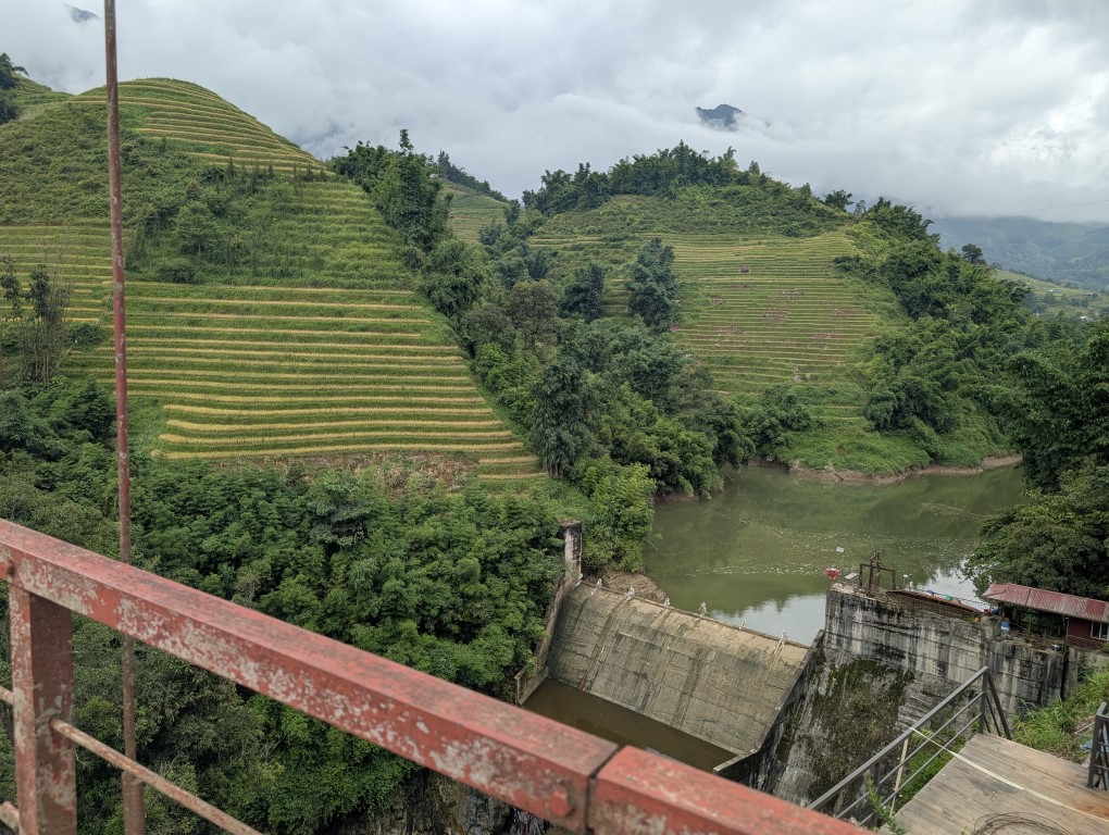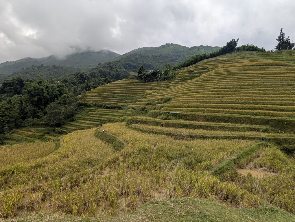 The 6-hour trek was stunning. We saw tessellated rice paddies curving around mountains; water buffalo lazing in muddy puddles; dogs, laying in the dirt exasperated from the heat; chickens and their chicks, ducks and their ducklings foraging below bamboo forests and around homes; the sound of crickets and roosters echoing through the countryside; and the occasional motorbike piled with bags of rice, long runs of timber or children, winding through the small villages.
