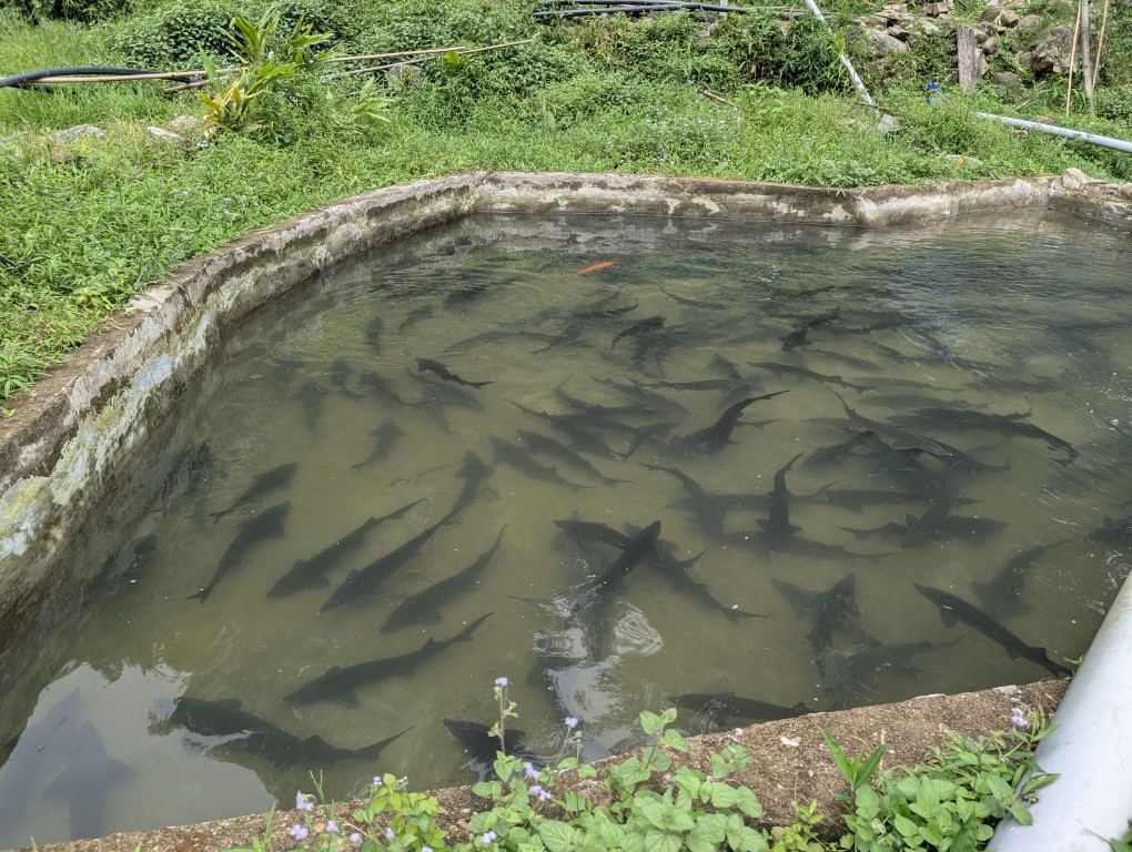 We passed by small sturgeon farms filled with the large fish that are a specialty of the region. Wild hemp plants grew on the sides of the roads, which local women manipulate as they sit and chat and use to create thread. Indigo plants are used to dye cloth and baskets a rich blue colour, and these lengths of cloths hung across lines in every home we passed. Yim showed us how rubbing the leaves in our hands released a green dye that turned blue over time.