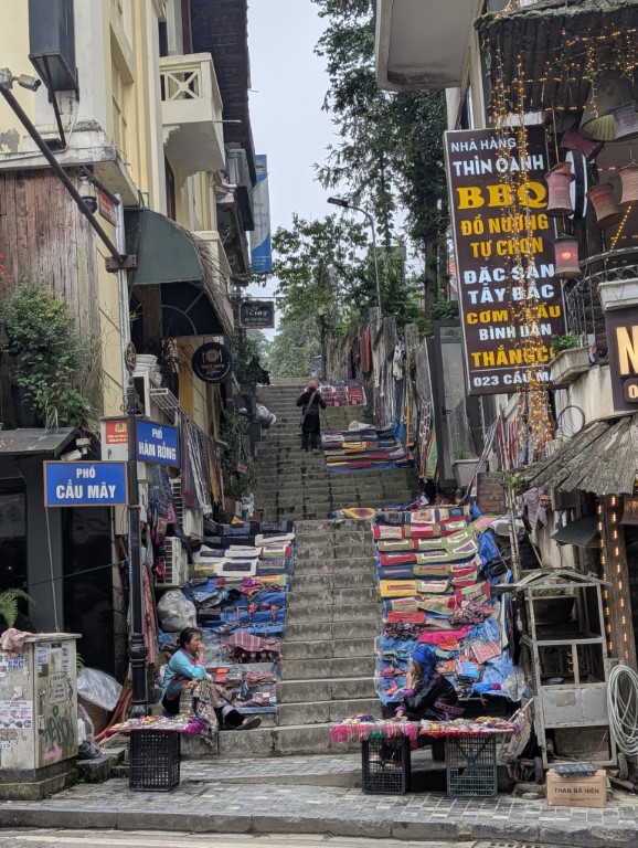 Another overnight train rattled us into Hanoi. There was a VIP room at the station in Lao Cai where we ate possibly the worst meal we had in Vietnam. This was potentially our own fault to be honest as we ordered a burger and club sandwich to get a break from the incredible noodle and rice dishes we’ve been eating. But they were awful. We had been looking forward to the Chapa Express, the alleged “luxury” “distinguished” “impeccable” (all from their publicity spiel) cabin we’d swooned over online. In reality it was average at best. Passengers in the hallway were yelling at the manager saying they’d been “swindled” with the room they were given. The overnight supper was a banana. The promise of complimentary wine left staff looking perplexed when we asked about it.