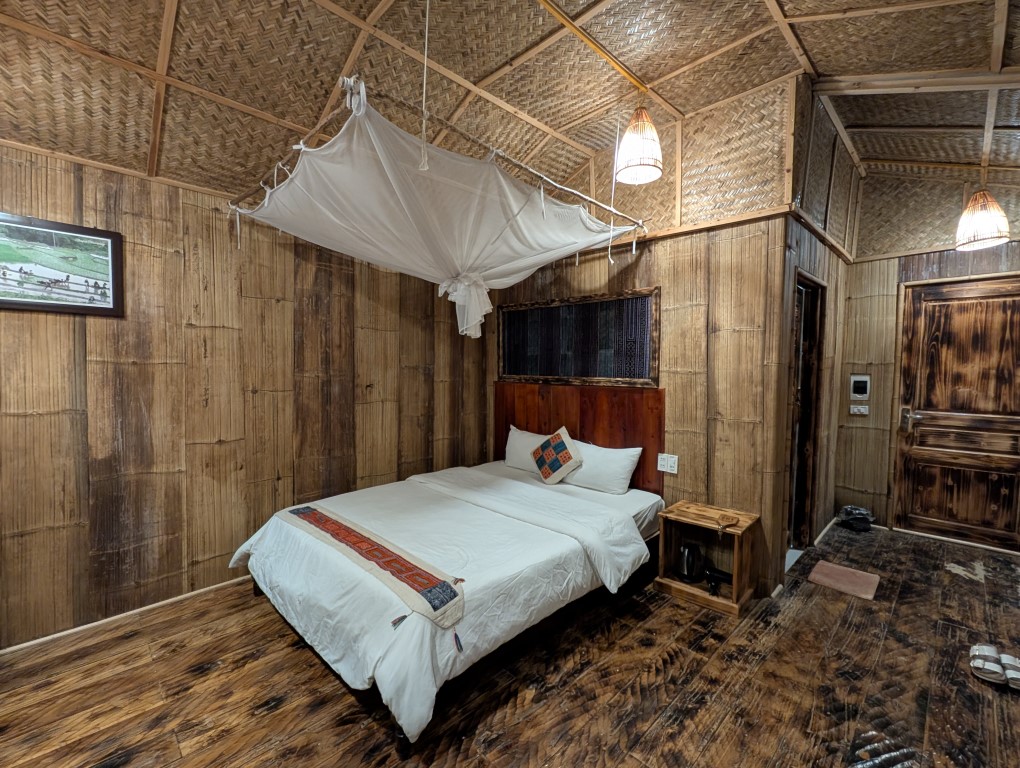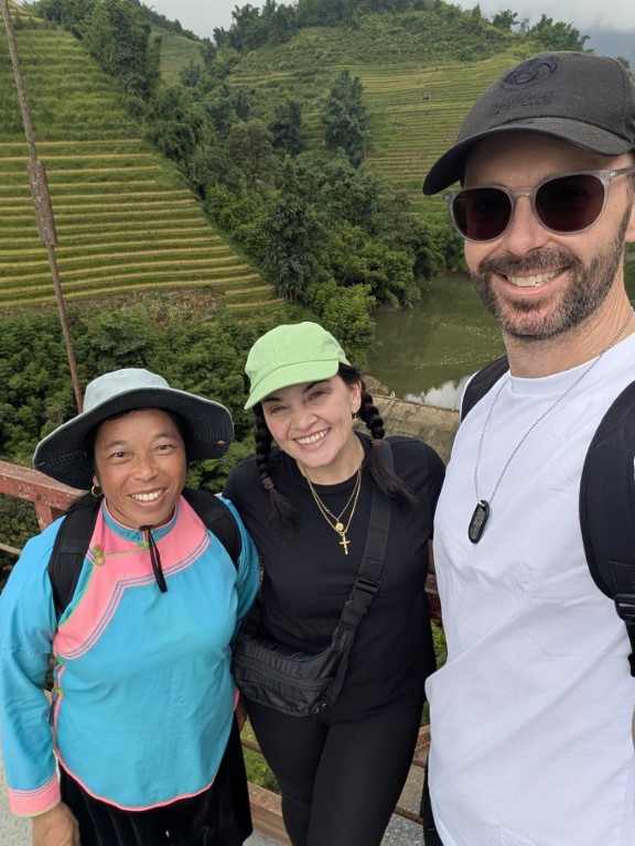 We had decided that we wanted a farm/country leg to our holiday, and our three nights at Chapa Farmstay Mountain Retreat, about 20 minutes out of the town via rocky, eroded roads, would give us a refreshing breath between chaotic cities. Our timber and bamboo stilted mountainside home offered sweeping views of terraced rice fields, lush forests and green mountains beyond. It was a dream. Our room also featured cloth hand printed and woven by local Hmong villagers, a super comfy bed and our own ensuite.