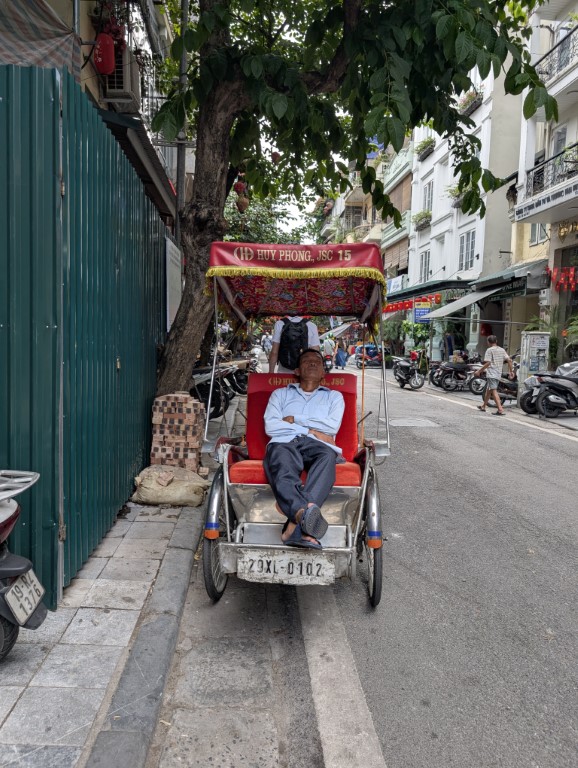 The hassle of just getting around, and finding a space to walk along congested streets when all of the footpaths are taken over by parked motorbikes; as well as cyclo drivers yelling out “hello madam”, massage spa owners yelling out “madam, massage”, restaurant owners yelling out “madam, eating”; and the incessant heat and humidity of Hanoi just wore us down.