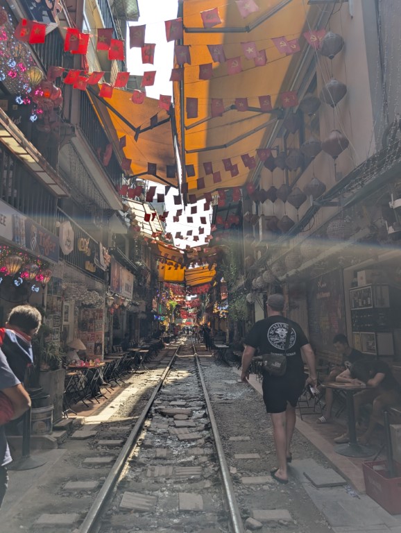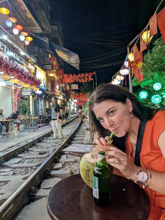 One of Hanoi’s highlights is its infamous Train Street, which dates back to around 1902, and became Insta-famous in 2018 with travel bloggers posting vision of trains rattling dangerously close to houses and shops through Hanoi’s Old Quarter. While there are barriers up around some sections of the street, if you are invited to sit at a café by the owner, you can be escorted through. I sat comfortably sipping on a fresh coconut, wondering why everyone seemed so chill at being centimetres from a train track. Kittens from a cat café wandered across the tracks. A lady and her dog strolled nonchalantly down the middle.