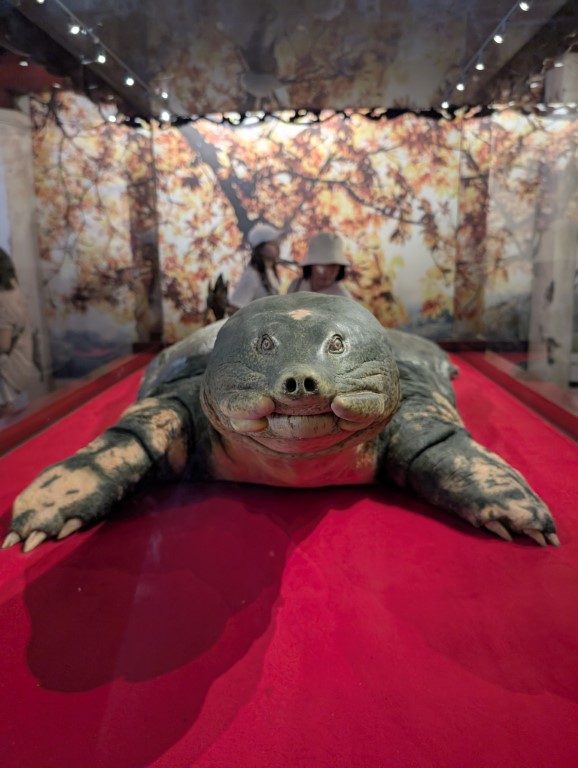 A Grab (Vietnam’s take on Uber, but a LOT cheaper) took us to Hoan Kiem Lake where we visited the Ngoc Son Temple and two examples of taxidermized Sword Lake Turtles who are only found in this lake, and only 6 currently survive. I love a good folklore tale, and I attempted to piece together the poorly translated sign in the temple about the significance of these turtles. There was something about a turtle offering his claws to make a magical crossbow, and something else about a turtle lending a golden sword to someone else to fight off invaders…but by the time I’d worked all that out I was bored and wanted to go. Plus, those turtle eyes were creepy AF. And I pondered on the importance of turtles to local folklore when moments earlier I had seen tubs of tortoises in the market scratching and clawing at each other attempting to escape. Hmmmm.